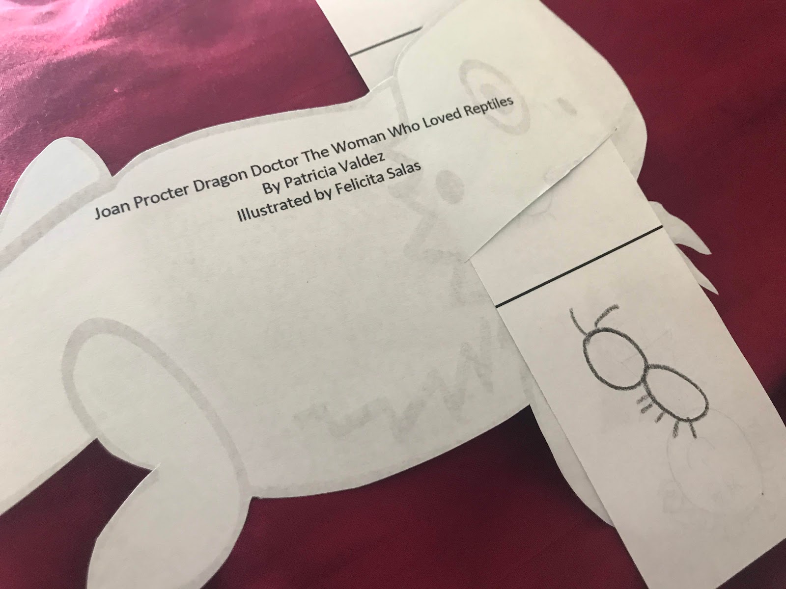 After you read Joan Procter, Dragon Doctor The Woman Who Loved Reptiles by Patricia Valdez and illustrated by Felicita Salas, make your own “dragon” and insects for it to "eat" nom nom nom! On the back, write summaries, notes, or facts!